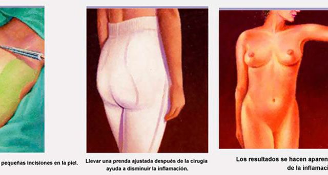 Tras la cirugía se pueden colocar tubos de drenaje bajo la piel durante 2 o 3 días para disminuir la posibilidad de que se acumulen fluidos. Se colocará una faja, medias o vendaje elástico sobre la zona tratada para controlar la hinchazón y el sangrado y para ayudar a la piel a adaptarse al nuevo contorno. Suele ser necesario llevarlo durante 2 o 3 semanas y luego solo durante el día por unas semanas más, dependiendo de las instrucciones de su cirujano plástico. También pueden administrarse antibióticos para prevenir la infección. No espere tener un aspecto óptimo justo después de la cirugía, además, se encontrará más pesada debido al exceso de fluidos que se administran. Las áreas liposuccionadas estarán hinchadas y con hematomas y se puede tener una sensación de quemazón. El dolor puede aliviarse con la medicación prescrita por su cirujano plástico. Puede perder sensibilidad en la zona tratada, no se preocupe, retornará. No es infrecuente sentirse algo deprimido en los primeros días o semanas tras la cirugía, sepa que es algo normal y que cederá a medida que vaya viéndose mejor.